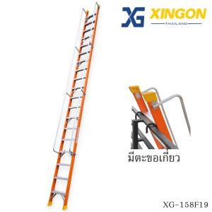 บันไดไฟเบอร์กลาสแบบพาดมีราวจับ19ขั้นมีตะขอเกี่ยว XG-158FA19