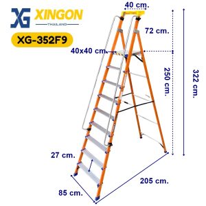 บันไดแพลตฟอร์มไฟเบอร์กลาสมีราวจับ รุ่นจัมโบ้9ฟุต XG-352F9 (สินค้าใหม่)
