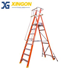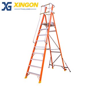 บันไดไฟเบอร์กลาสแพลตฟอร์ม9ฟุตมีขาค้ำ XG-152F9