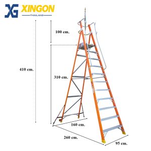 บันไดไฟเบอร์กลาสแพลตฟอร์ม10ฟุตมีขาค้ำ XG-152F10