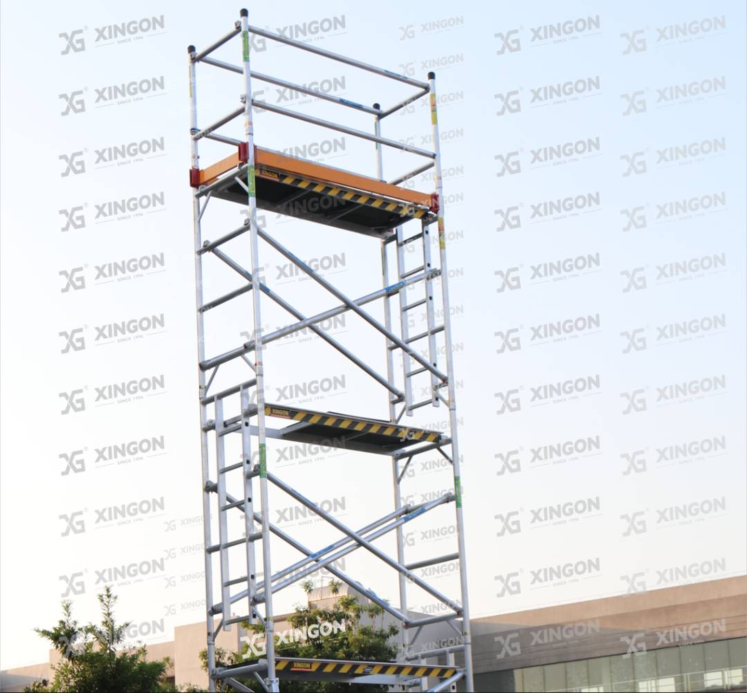 XINGON XG-178 & XG-173 aluminum scaffolding are made of all aluminum alloy material, using aviation aluminum materials 6082-T6 and 6061-T6.The product design complies with international EU certification EN 1 004:2004, and the product has obtained safety certification from SGS Group in Switzerland. XlNGON products are insured by Ping An Property Insurance Company of china. Our company has obtained the IS0 9001:2015 international quality management system certification. comprehensively ensuring the performance stability and product superiority of XlNGON aluminum products, and providing safety and security for your construction.