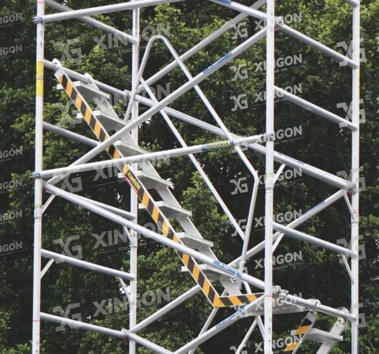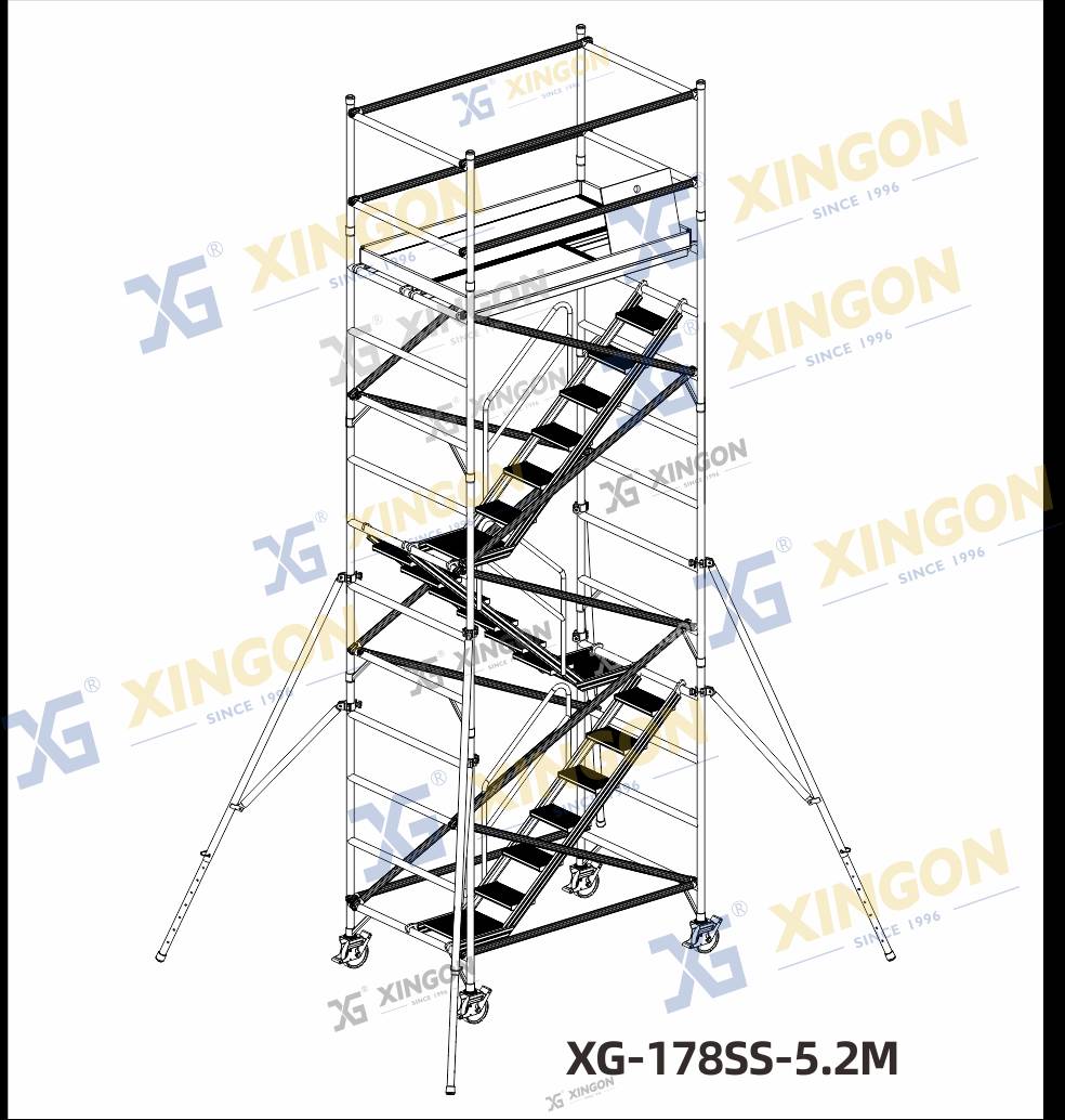 XINGON XG-178 & XG-173 aluminum scaffolding are made of all aluminum alloy material, using aviation aluminum materials 6082-T6 and 6061-T6.The product design complies with international EU certification EN 1 004:2004, and the product has obtained safety certification from SGS Group in Switzerland. XlNGON products are insured by Ping An Property Insurance Company of china. Our company has obtained the IS0 9001:2015 international quality management system certification. comprehensively ensuring the performance stability and product superiority of XlNGON aluminum products, and providing safety and security for your construction.