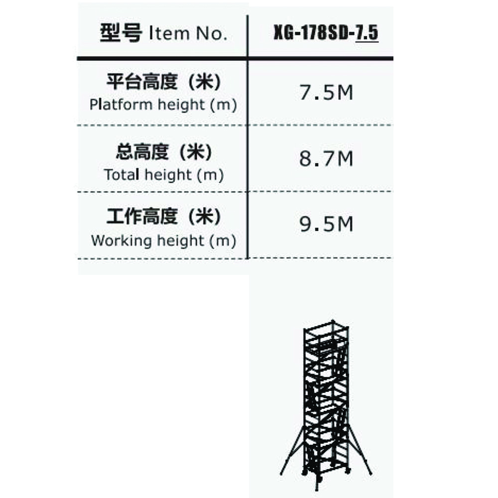บันไดนั่งร้านอลูมิเนียมสูง7.5เมตร XG-178SD-7.7M