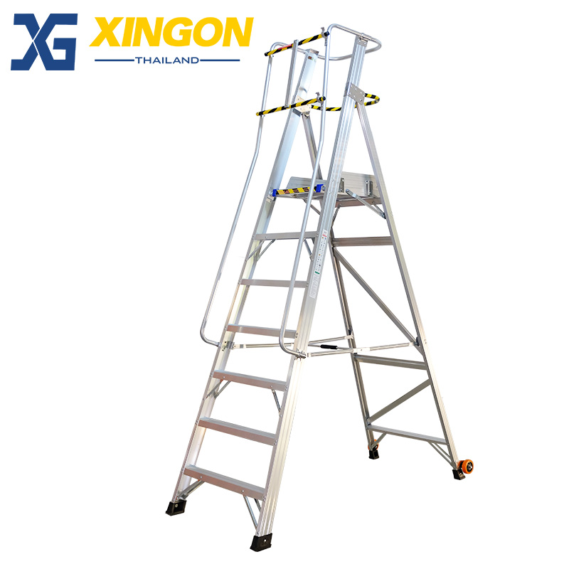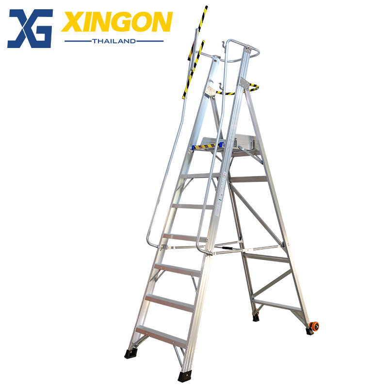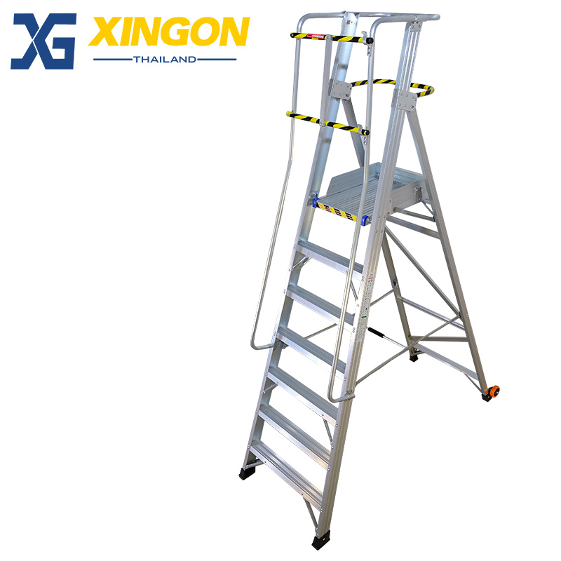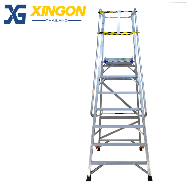 บันไดแพลตฟอร์ม อลูมิเนียม11ฟุตมีราวจับและกันตก XG-152A11
