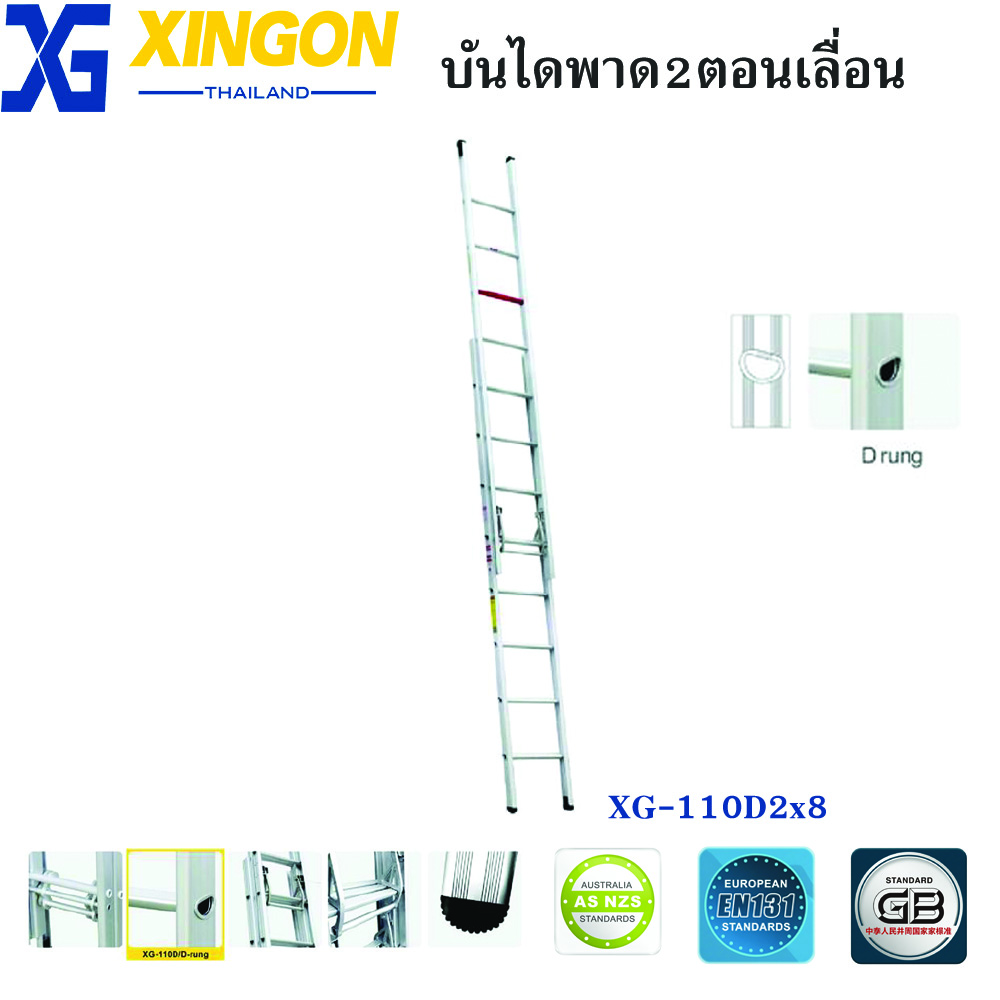 บันไดอลูมิเนียมพาด2ตอนเลื่อน13ฟุต(13+13ขั้น) XG-110D2x13