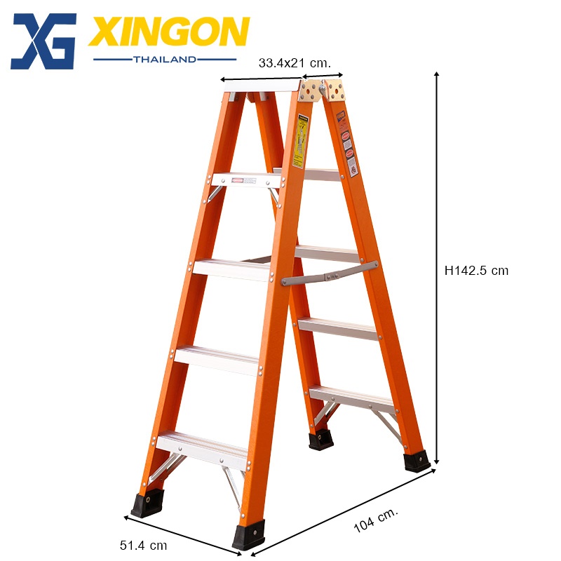 ขั้นเหยียบเป็นอลูมิเนียม บันไดไฟเบอร์กลาสทรงเอ5ฟุตรับน้ำหนักได้ 150 กก. ต้านกระแสไฟฟ้าได้ 35,000V