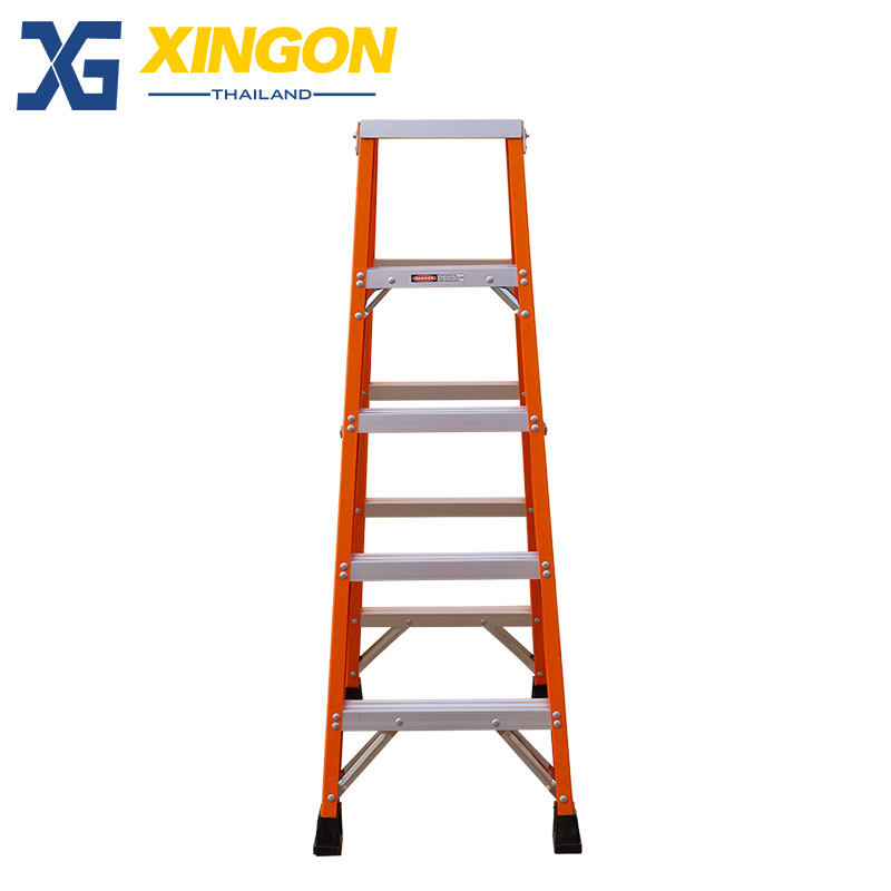 บันไดไฟเบอร์กลาสทรงเอขึ้นลงใช้งานได้ทั้ง 2 ด้าน ขาใหญ่พิเศษ เพื่อความแข็งแรง โครงสร้างผลิตจากไฟเบอร์กลาสสีส้ม นำเข้าจากอเมริกา