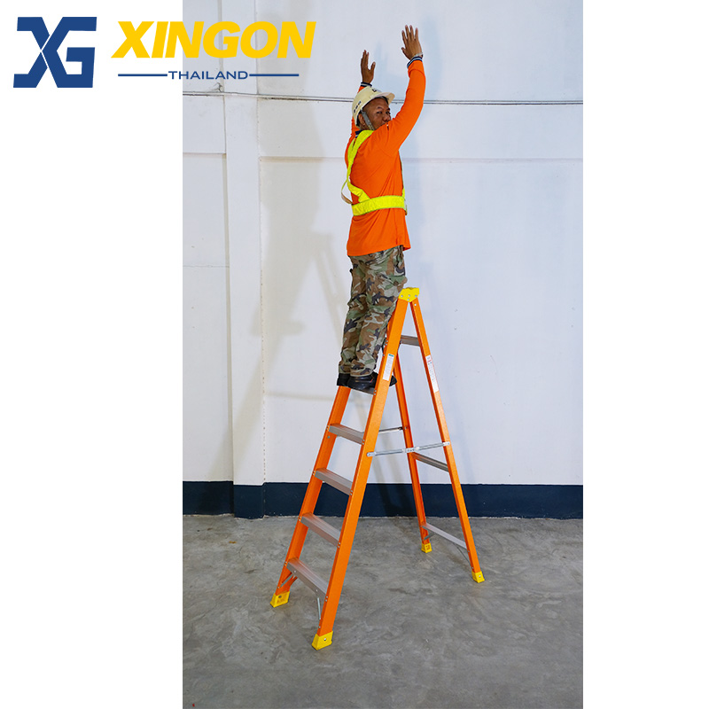XG107B5 บันไดไฟเบอร์กลาสทรงเอมีถาดวางเครื่องมือ7ฟุต