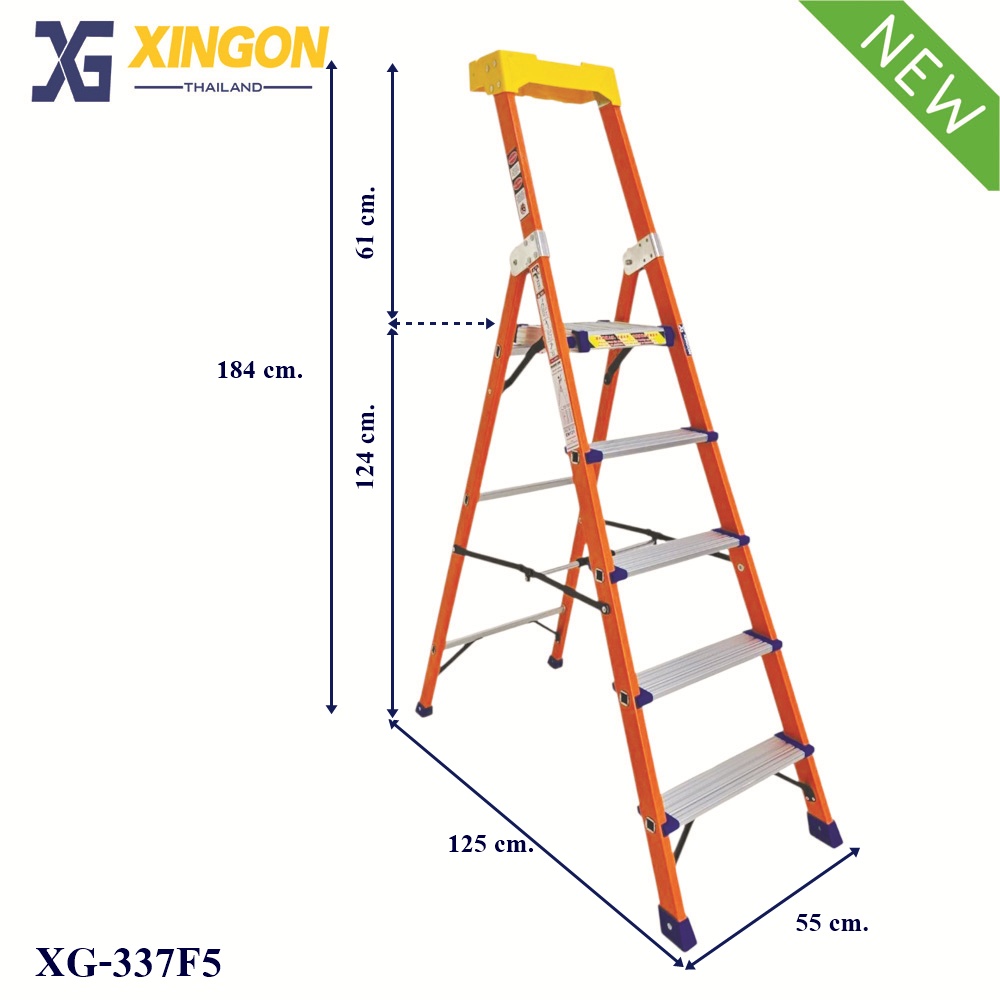 บันไดแพลตฟอร์มไฟเบอร์กลาสมีราวจับ รุ่นจัมโบ้5ฟุต XG-352F5 (สินค้าใหม่)