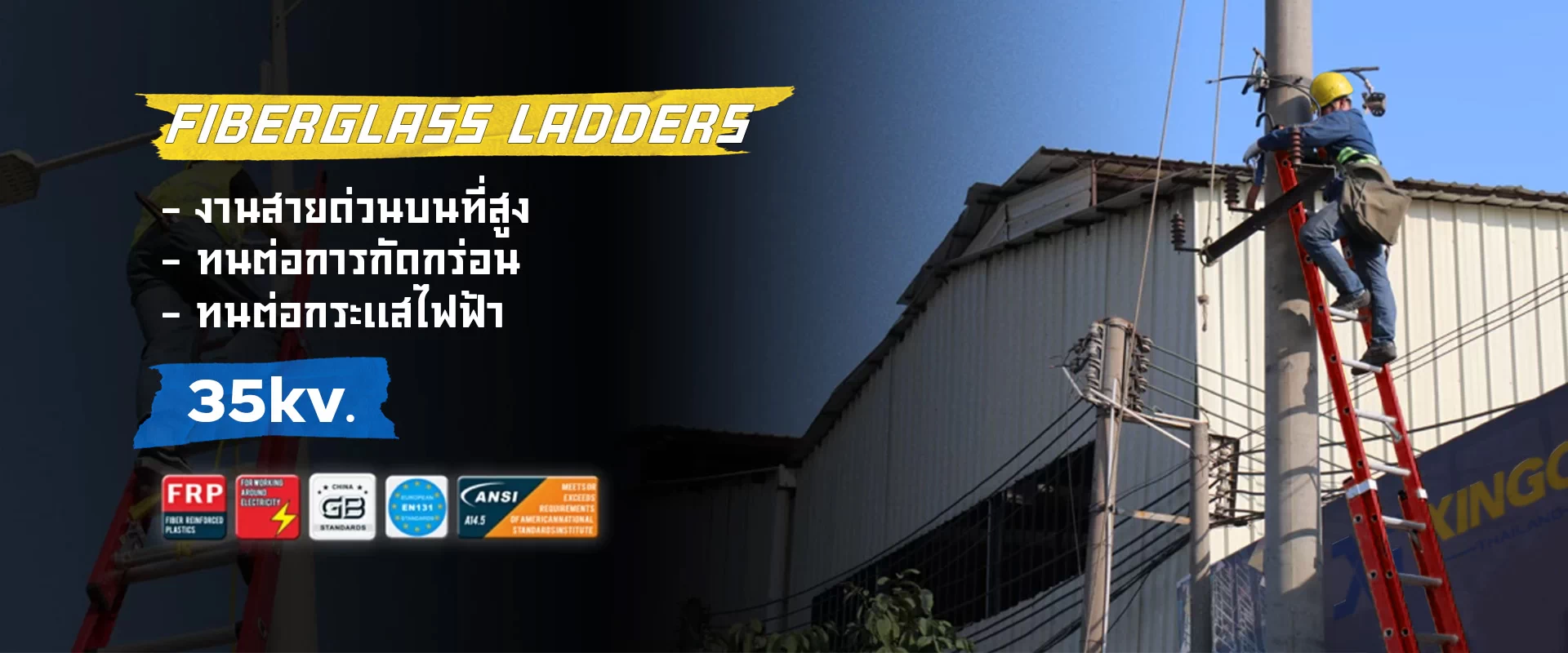 บันไดไฟเบอร์กลาสเหมาะสำหรับการใช้งานไฟฟ้า ช่วยต้านกระแสไฟฟ้าได้ 35,000 V ต่อตารางนิ้ว บันไดไฟเบอร์กลาสมีให้เลือกหลายแบบ เช่นบันไดไฟเบอร์กลาสยืดหด บันไดไฟเบอ์กลาสแบบพาด บันไดไฟเบอร์กลาสทรงเอ บันไดไฟเบอร์กลาสติดล้อ