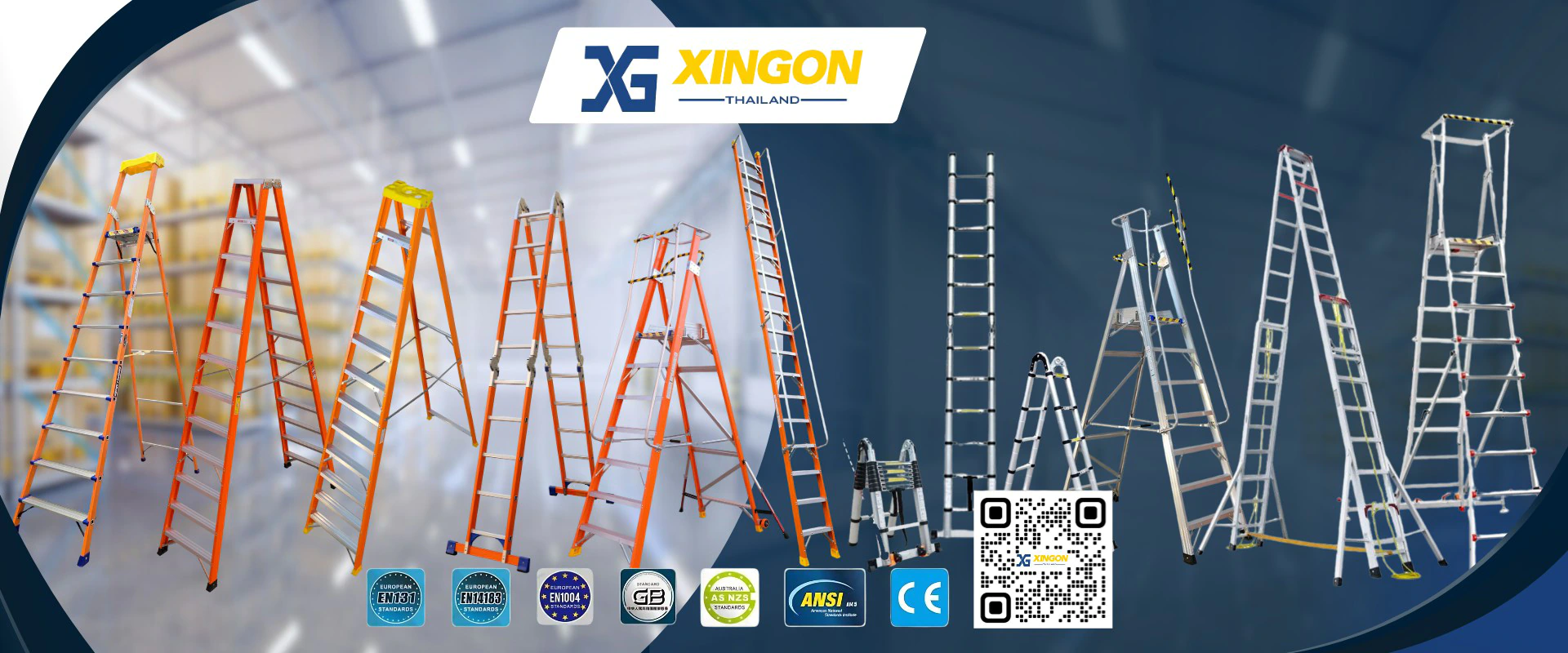 ดำเนินกิจการจำหน่ายอุปกรณ์ขึ้นที่สูง และวัสดุเครื่องมือในโรงงานอุตสาหกรรม ด้วยประสบการณ์การผลิต 20 ปี บริษัทได้รับการแต่งตั้งให้เป็นตัวแทนจำหน่ายบันได ภายใต้ชื่อ XINGON อย่างเป็นทางการ มุ่งเน้นไปที่บันไดอลูมิเนียม บันไดไฟเบอร์กลาส และอุปกรณ์ปีนเขาอื่น ๆ