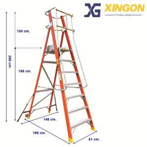บันไดไฟเบอร์กลาสแพลตฟอร์ม7ฟุตมีขาค้ำ XG-152F7