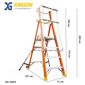 บันไดไฟเบอร์กลาสแพลตฟอร์ม4ฟุตมีขาค้ำ XG-152F4