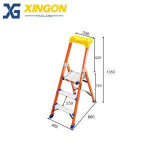 บันไดไฟเบอร์กลาสทรงเอขึ้นลงใช้งานได้ทั้ง 2 ด้าน ขาใหญ่พิเศษ เพื่อความแข็งแรง โครงสร้างผลิตจากไฟเบอร์กลาสสีส้ม นำเข้าจากอเมริกา