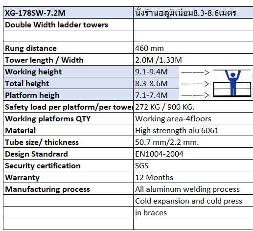SKU: XG-178SW-7.2M Categories: นั่งร้านอลูมิเนียม, นั่งร้านอลูมิเนียมรุ่นXG-178SW