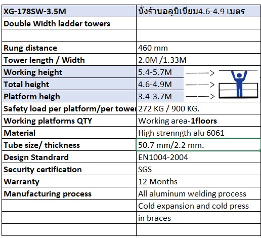 นั่งร้านอลูมิเนียม บันไดแนวตั้งสูง4.6-4.9เมตร XG-178SW-3.5M