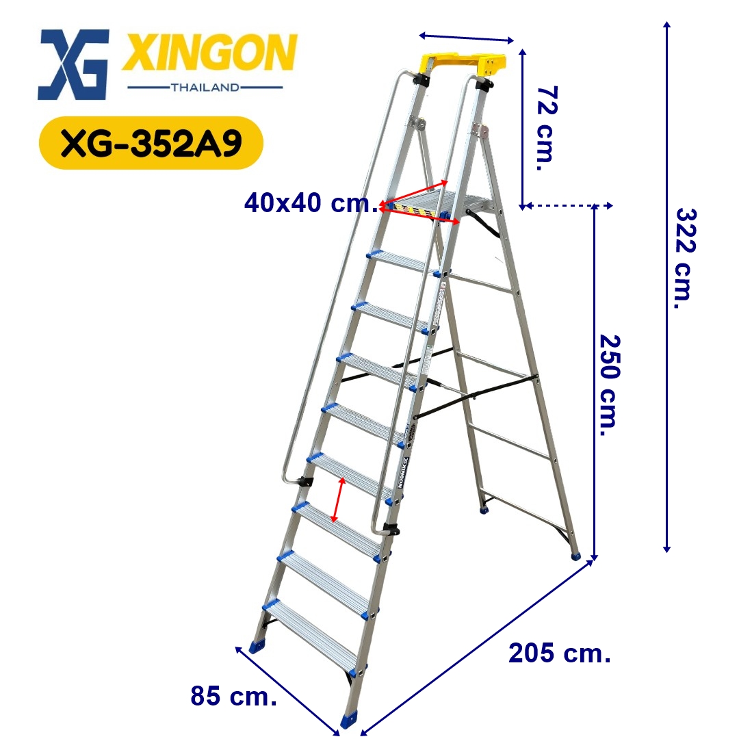 บันไดแพลตฟอร์มอลูมิเนียมมีราวจับจัมโบ้9ฟุต XG-352A9 (สินค้าใหม่)