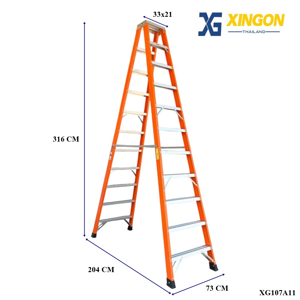 บันไดไฟเบอร์กลาสทรงเอขึ้นลงได้2ทาง11+11ฟุต XG107A11